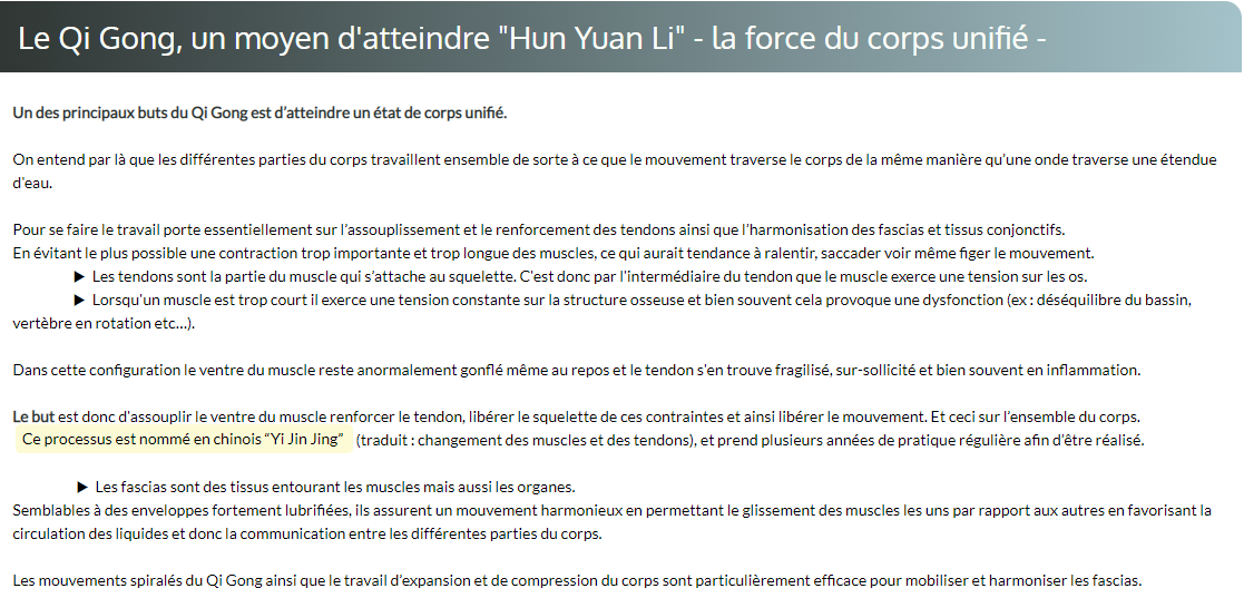 • Le Qi Qong, un moyen d'atteindre "Hun Yuan Li" - la force du corps unifié